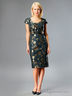 Детали: V-образный вырез; втачной пояс с декоративным элементом; оригинальный принт
