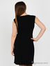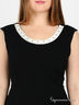 Детали: круглый вырез горловины окантован контрастной рюшей со стразами; застегивается на молнию сзади; шлица