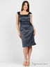 Детали: вырез каре; широкие бретели; застегивается на молнию сзади; шлица; по-бокам вертикальные косточки; декорировано драпировкой, пришивными стразами и пуговицами