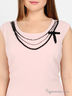 Детали: круглый вырез горловины; застегивается на молнию сзади; шлица; полочка декорирована контрастными бусинами и бантиком из тесьмы