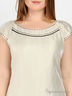 Детали: круглый вырез; короткий рукав; застегивается на молнию сзади; шлица; декорировано бисером и контрастной вставкой