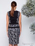 Платье комбинированное из двух материалов. Трикотаж джерси и гипюр на основе. Четкие линии, глубокое декольте придают изделию праздничный вид. Легко комбинируется с аксессуарами, застежка молния находится по среднему шву спины.