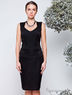 Платье комбинированное из двух материалов. Трикотаж джерси и гипюр на основе. Четкие линии, глубокое декольте придают изделию праздничный вид. Легко комбинируется с аксессуарами, застежка молния находится по среднему шву спины.