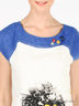 Детали: застежка на молнию на спине, полочка декорирована набивным рисунком и яркими пуговицами