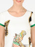 Детали: застежка на молнию на боку, полочка декорирована набивным рисунком, короткий рукав