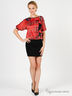 Детали: короткий цельнокроеный рукав присборен на резинку, полочка декорирована бантами, отрезная юбка