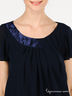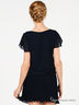 Детали: короткий широкий рукав, полочка декорирована атласными вставками, пояс на широкой резинке, юбка-плиссе