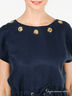 Детали: округлый вырез горловины декорирован металлическими вставками, пояс на кулиске