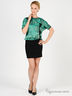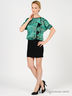 Детали: короткий цельнокроеный рукав присборен на резинку, полочка декорирована бантами, отрезная юбка