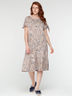 Мягкое платье прямого фасона из принтованного материала, длины миди, с коротким рукавом и воланом.