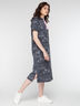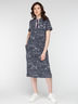 Платье прямого фасона с коротким рукавом, длины миди, с капюшоном