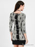 Отличное платье прямого силуэта из плотного эластичного трикотажа с оригинальным рисунком. Округлый вырез горловины, рукав 3/4, на спине планка с декоративными пуговицами. В комплекте великолепное колье на атласной ленточке. Идеально на каждый день.