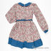 Платье с расклешенной юбкой, отложным воротом и длинным рукавом застегивается на спинке на скрытую молнию. Рукава посажены на манжеты с резинкой. По боковым швам пришиты шлевки, продет поясок. Контрастные ворот, пояс и подол. Хлопковый подклад.