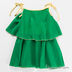 Модель свободного кроя. Двойной лиф: нижняя часть - желтого цвета, трикотажная с бретелями, завязывающимися на бантики, верхняя часть - свободного силуэта в тон юбке. Двухслойная расклешенная юбка.