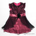 Детали: короткий двухслойный рукав-"крылышко", скрытая застежка на молнию на спинке, нижний слой - розовый атлас, верхний слой - черный жатый шифон, линия талия подчеркнута широкой розовой лентой с атласной розой, края верхнего слой обработаны оверлоком