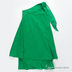 Лиф асимметричного кроя, одно плечо оголено, на втором лента завязывается в бант. Расклешенный силуэт. Двухслойная юбка.