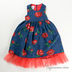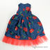 Синее шелковое платье для девочки с цветочной расцветкой.
