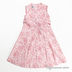 Крой платья расклешенный, клиньями. Хлопковая ткань украшена бархатным жаккардовым рисунком. Рельефные выточки подчеркивают фигуру. Пояс застрочен в боковые швы и завязывается на спинке. Сзади скрытая молния до середины спины. Без подклада.