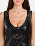 Детали: глубокий круглый вырез; застегивается на молнию сзади; бретели и полочка украшены пришивными стразами