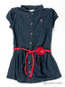 Стильное повседневное платье для девочки. Отложной воротник-стойка. Короткие рукава. Спереди застежка на кнопки. Талия на втачном поясе со шлевками. В комплекте ярко-красный поясок с цветком.