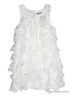 Трапецевидный силуэт этого нарядного платья состоит из ярусов шифона оформленых крупными волнами, что несомненно, придает воздушный легкий и элегантный образ. Платье украшает лаконичный цветок-лента.