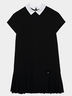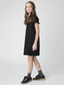 Строгое черное платье легкого трапециевидного силуэта с коротким рукавом из костюмной ткани - образец стиля и качества! Элегантный крой с заниженной линией талии, юбка с в складку, придающая модели изысканность, съемный белоснежный воротник, формирующий положительный образ опрятной дисциплинированной девочки, делают платье важным приобретением в преддверии школьного сезона. Маленькая деталь - репсовый бантик с деликатной навеской - придает модели завершенность. Подкладка платья способствует комфортному взаимодействию изделия с кожей и аккуратной эксплуатации в течение всего года.