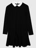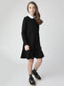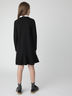 Стильное черное платье с длинным рукавом, выполненное из джерси - прекрасный повседневный вариант. Оригинальность модели придает асимметричный волан, формирующий трапециевидный силуэт и создающий динамику. Съемный белоснежный воротник подчеркивает положительный образ опрятной дисциплинированной девочки. Плотное формоустойчивое трикотажное полотно создает необходимые для девочки комфорт и свободу движений, а также делает платье очень удобным в эксплуатации и уходе.