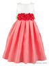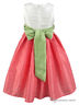 Эффектное нарядное платье. Контраст орнаментальной юбки в красную клетку подчеркивает салатовый пояс, оформленный букетом алых розочек.