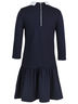 Замечательное платье из "джерси" - стильное и комфортное решение на каждый день. Именно таким и должно быть повседневное платье для школы - красивым и удобным! Крупный волан по низу изделия подчеркивает романтичный образ ученицы. Мягкий трапециевидный силуэт гарантирует свободу движений и отличную посадку модели на любой фигуре. Отстегивающийся белый воротник с деликатными матовыми стразами придает ощущение свежести и чистоты и делает платье очень нежным и привлекательным. Купить школьное платье стоит в самом начале сезона, т.к. и ранней осенью, и зимой платье будет востребовано. Добротное, практичное, комфортное, элегантное, трикотажное синее платье с белым воротником - отличное решение для будней ученицы.