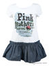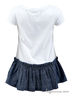 Платье смотрится выразительно и интересно благодаря сочетанию двух фактур: хлопчатобумажного трикотажа и легкой джинсы. Полочка декорирована эффектным шрифтовым принтом с изображением фламинго.
