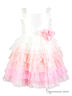 Элегантное приталенное платье на бретелях имеет пышную форму юбки за счет множества оборок из сетки в нежной градиентной цветовой гамме (переход от светлого к более насыщенному).