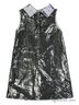 Сияющее платьице для девочки свободного силуэта. Выполнено из приятного на ощупь материала. Округлый вырез горловины с атласным отложным воротником. Без рукавов. Сзади застегивается на молнию. Модель украшена серебристыми пайетками.