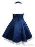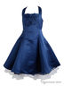 Элегантное вечернее платье глубокого синего цвета (морская пучина), расклешенное от талии. Оформление - стразы и элегантный бант. Пышность платью придает многослойный подъюбник. Изящная шнуровка на спинке придает платью особый шик, а также позволяет регулировать платье по фигуре.