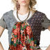 Трикотажное платье с коротким рукавом. На передней и задней стороне нашивки из шелковой ткани. Подол платья выполнен в виде широкой вставки из прозрачной кружевной ткани.