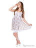 Детали: V-образный вырез горловины, тонкие бретели, завышенная линия талии с пояском, расклешенная струящаяся юбка.