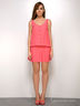 Платье с заниженной линией талии на резинке. Модель на тонких бретелях, с округлым вырезом горловины, на груди застежка на пуговицах.