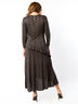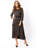 Платье ассиметричного кроя. Застежка на пуговицу. Вырез горловины лодочка. Без карманов. С разрезом.