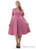 Платье с V-образным вырезом горловины, с декоративным запахом, благодаря которому подчеркивается область декольте. Короткие втачные рукава. Отрез под грудью, продольная вставка с защипами делает рост визуально выше. Очень пышная юбка клеш от линии груди скроет недостатки и подчеркнет достоинства. Длина до колена. Из плотного вискозного джерси.
