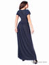 Платье с декоративным запахом и короткими втачными рукавами. Декоративная вставка в области лифа и пояс в цвет ткани сделает талию визуально уже. Длинна пышная юбка в пол с защипами от талии скроет недостатки в области живота и боков. Из плотного вискозного джерси.