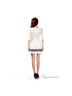 Платье из плотного вискозного джерси. Круглый вырез горловины, втачные рукава 3/4. Отрез по линии талии, расклешенная юбка. Полоса темного цвета по подолу. Ткань очень мягкая и слегка эластичная.