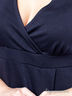 Платье женственного силуэта. V-образный вырез горловины, эффект - запаха, короткие втачные рукава, отрез под грудью. Юбка расклешенная с защипами, очень пышная. Длина до колена. Изготовлено из плотного джерси.