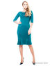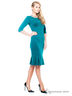Платье зеленое с декоративной оборкой по низу подола. Модель с вырезом горловины - "лодочка", втачные рукава 3/4, приталенный силуэт. Из плотного вискозного джерси. Внимание! Оттенок слегка может отличаться от представленного на фото.