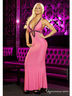 Роскошное вечернее платье розового цвета с эротичным вырезом капелькой, украшенным черными блестящими камнями с огранкой. Завязывается на мягкие эластичные ленты на шее. Форма платья элегантно подчеркивает фигуру обладательницы, в то же время полностью скрывая ноги. Декоративные камни надежно и качественно пришиты к платью. Данный наряд позволит в буквальном смысле блистать на любой вечеринке.