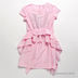 Легкая, полупрозрачная модель прямого кроя застегивается на одну пуговицу на спинке. Оборки, начинающиеся под спинкой продолжаются вертикально по передней части подола. Полочка украшена аппликацией и стразами.