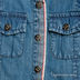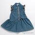 Детали: небольшой ворот-стойка, короткие рукава-крылышки, застежка на кнопки на полочке, два нагрудных кармашка, оборка