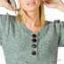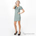 Стильное вязаное платье-футляр с круглым вырезом горловины и короткими рукавами. Спереди планка на пуговицах и два накладных кармана.