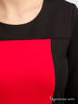 Платье трикотажное полуприлегающего силуэта с контрастной вставкой прямоугольной на полочке и спинке. Рукав втачной три четверти. Горловина круглая. Длина выше колена.