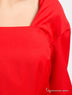 Платье прилегающего силуэта, отрезное по талии, вырез горловины квадратной формы, рукав втачной, спущенный, длиной до запястья. Спинка со шлицей. Длина платья до колена.