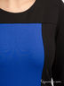 Платье трикотажное полуприлегающего силуэта с контрастной вставкой прямоугольной на полочке и спинке. Рукав втачной три четверти. Горловина круглая. Длина выше колена.