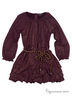 Платье, выполненное из качественного материала с мерцающим эффектом. Изделие с округлым вырезом горловины и длинными рукавами, сзади застежка на пуговицы. Модель украшена рюшами внизу юбки, и оригинальным двухцветным плетённым поясом на талии. Рукава собраны на резинку.